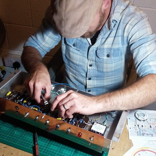 Here's a build diary of our Dominator valve guitar amplifier, from the Dusk Brothers workshop. We hand built the amp from scratch and finished the 1x10 cabinet with 'rough linen' (so rough it even has bits of hay in the weave!) heavily lacquered with shellac, sanded back to smooth off the hay in the linen, then a few coats of tobacco brown nitrocellulose. We added dark brown leather beading, cream faux leather piping around the speaker baffle, vintage radio knobs and a brass 'DB' symbol we designed and made from a left over peice of the silver plated jewellery box that was used for our Firebox guitar build. The ‘DOMINATOR’ tag on the front was also made from a piece of one of the red painted metal brackets that previously held the fire extinguishers in place inside the metal box that we used to make the Firebox guitar.